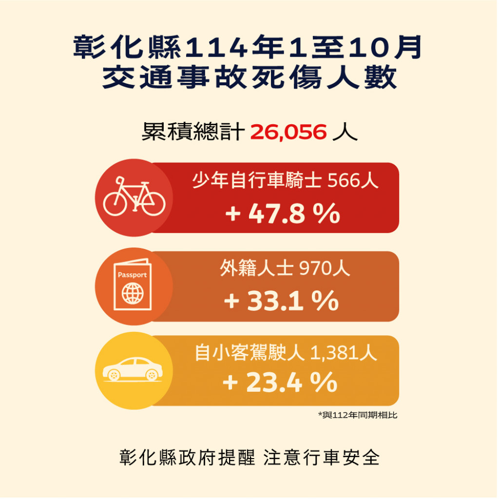 114年1-10月道路交通事故 彰化縣事故死傷累計26,056人